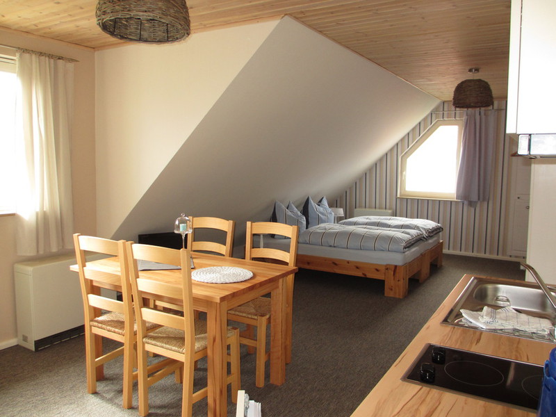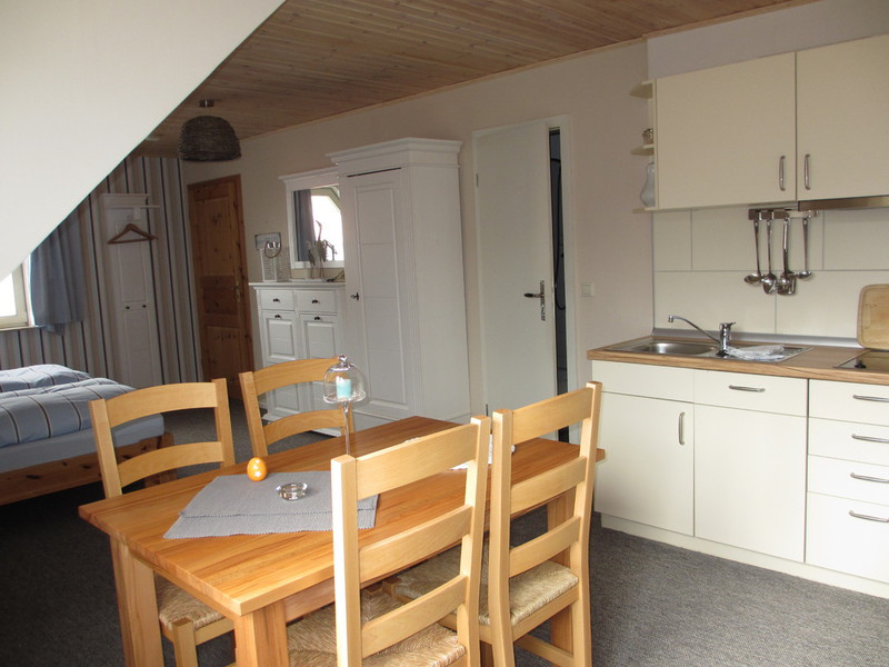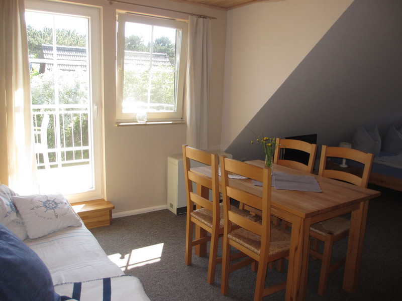 Diese Ferienwohnung befindet sich in der ersten Etage auf der Südseite des Hauses und hat eine Größe von ca. 30 –35 m² inkl. Dachschrägen.