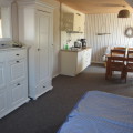 Ausstattung gehören 1 Betten mit einer Gesamtgröße von 1,60m x 2,00m. Im Wohnbereich steht eine Couch. Weiterhin stehen W-LAN, ein Fernseher und Radio mit CD-Player zur Verfügung. Die Küche hat
