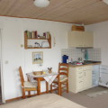 Die Aufteilung der Ferienwohnung beinhaltet einen kombinierten Wohn-Schlafraum mit Küchenzeile und Bad mit Dusche und WC. Zur Ausstattung gehören ein Doppelbett mit einer Gesamtgröße von 1,60m x 2,00